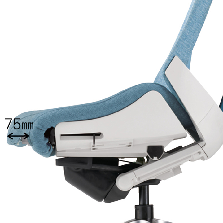 椅墊調節可於椅墊下前方條桿調整椅墊長短,可以緩解大腿的壓力,防止長時間坐著時容易發生的血流惡化,還可以減輕無法坐得很深或夠不到腿的壓力
