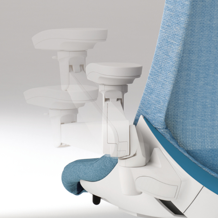 扶手可上下、前後移動,旋轉角度可在腋下自由調整,只需在握住調整桿的同時自由移動支撐手臂的肘托即可立即定位。