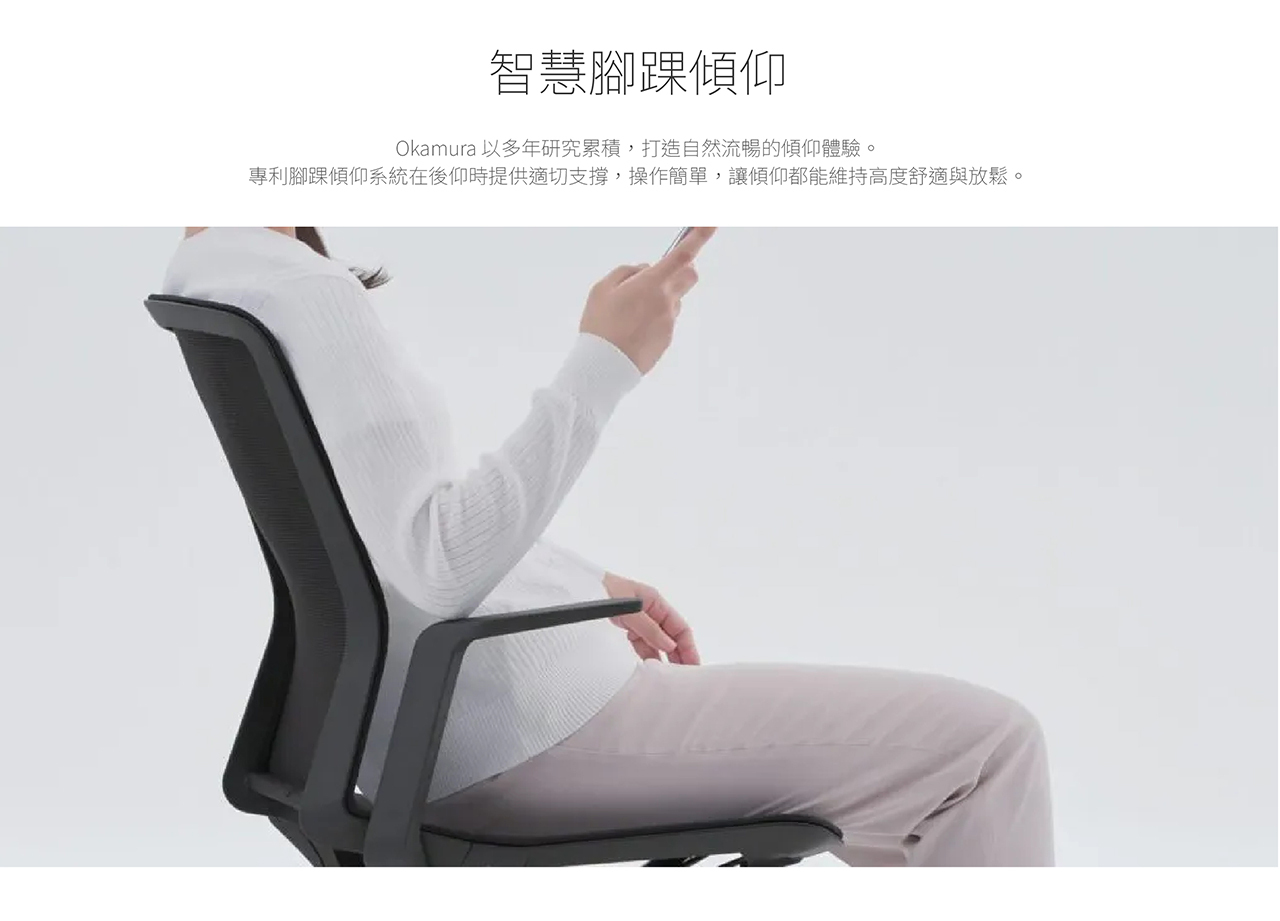 輕鬆簡易的調整功能,任何體型都可以立即獲得舒適感的一把座椅。
