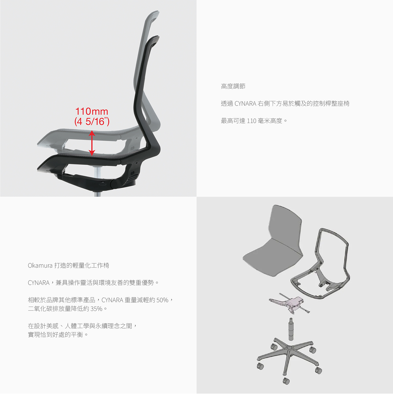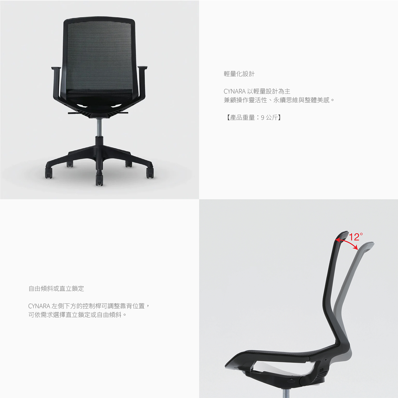超輕量環保設計,全椅僅 9kg。