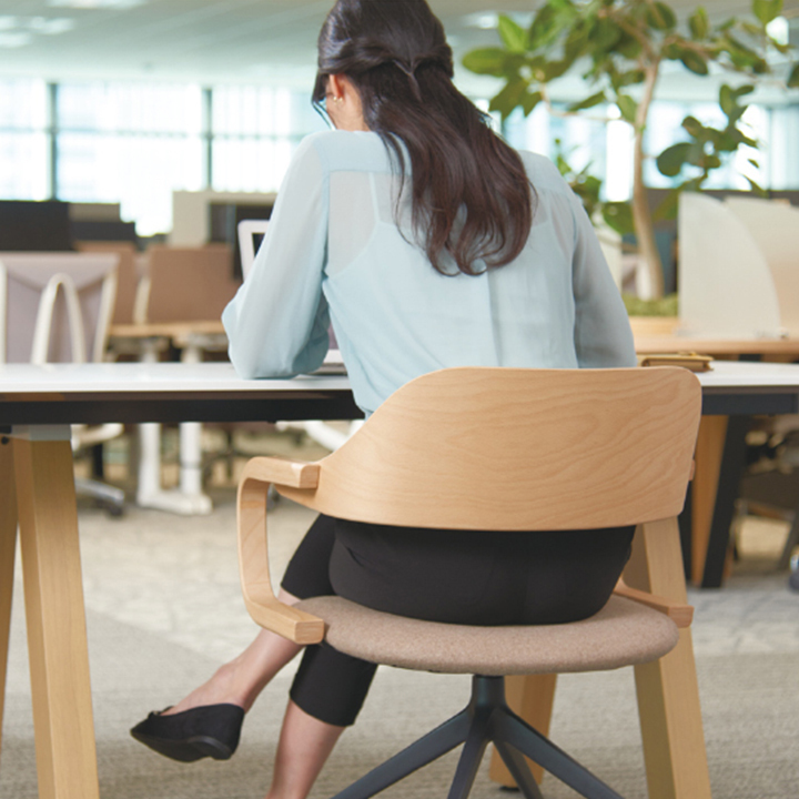 木材特有的「靈活」彈性耐力隨著工作時姿勢的各種變化,提供柔軟的支撐。 (帶臂/不帶臂兩種類型)