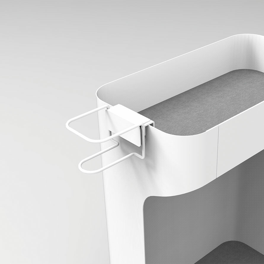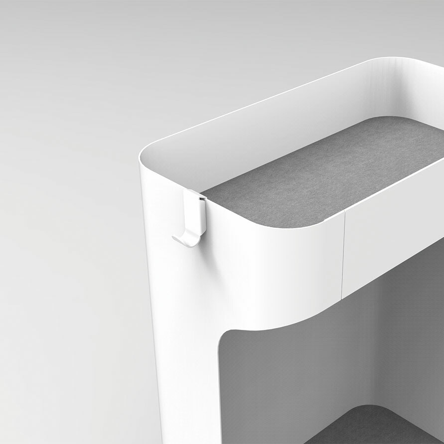 一款簡單開放式的收納櫃,適用於自由各種場合以及ABW等日常工作環境。 可高自由移動, 能夠放置包包或各種書面文具、用具。